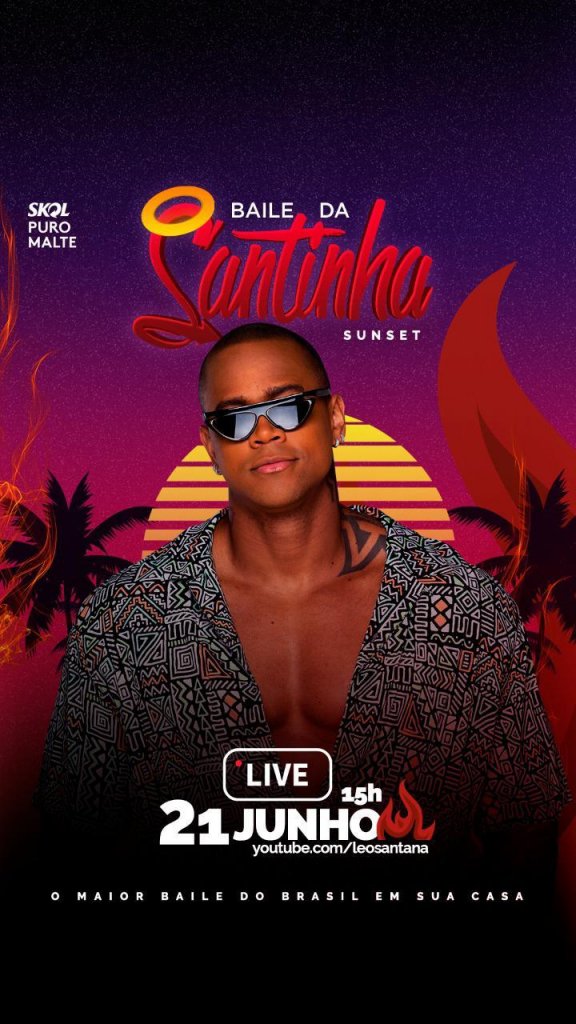 “Levarei o Baile da Santinha Sunset pra casa das pessoas. Já tem muita coisa pronta e eu não vejo a hora de mostrar pra vocês! O repertório também promete. Quero todo mundo preparado! Vai ser top, família!”, disse Léo.
