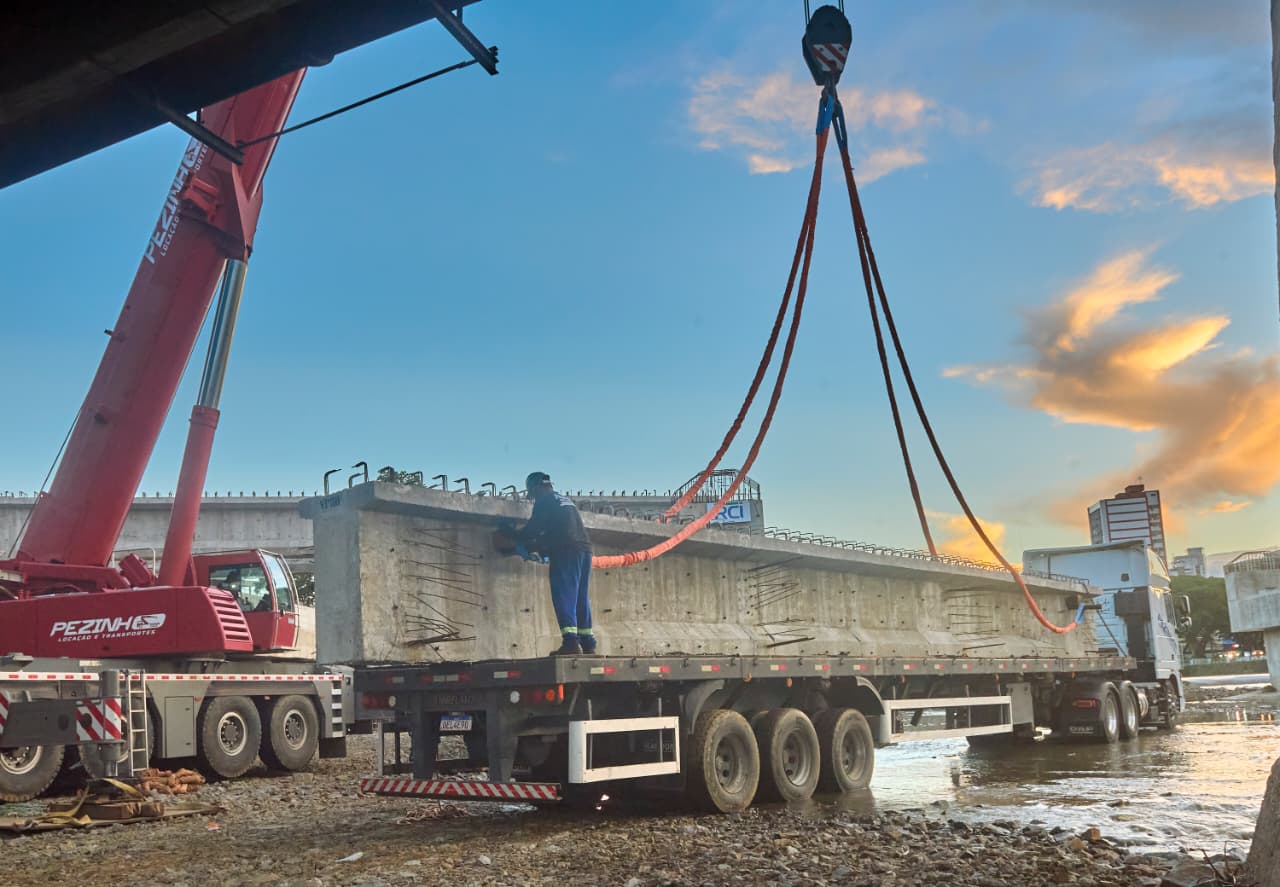 O analista de Infraestrutura e Urbanismo e engenheiro civil da Prefeitura, Gabriel Abílio, destaca que, devido as fortes chuvas do mês de março, houve um atraso de 20 dias para o início desta fase de içamento das vigas. No entanto, não houve impacto no cronograma geral da obra, já que a fabricação das vigas e das pré-lajes de concreto é executada simultaneamente e sem interrupções.