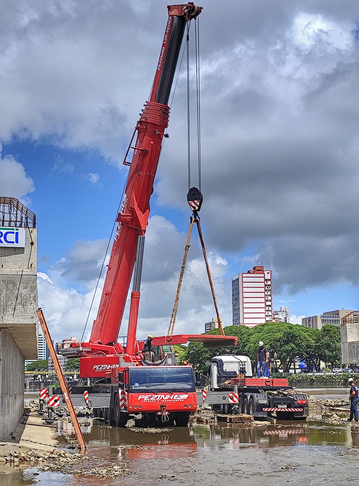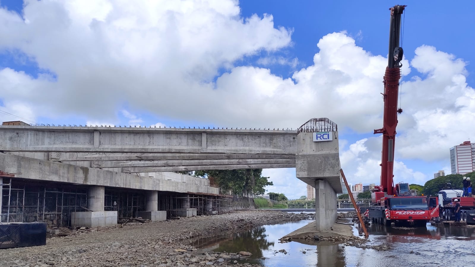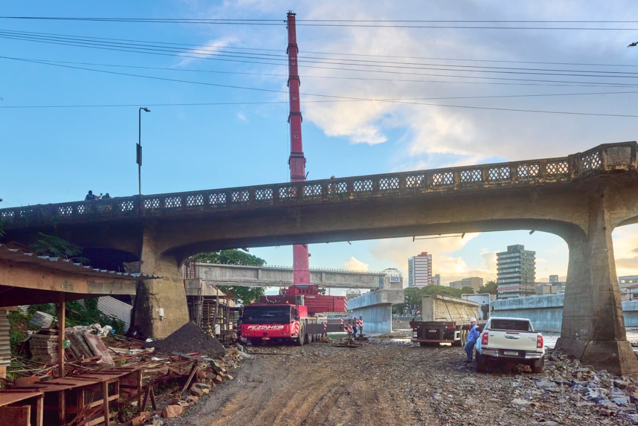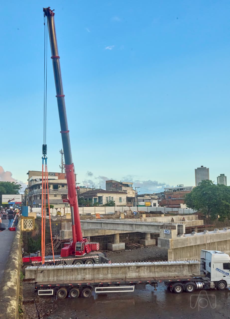 Com o suporte da Secretaria de Transportes e Trânsito (SETTRAN), que viabilizou a organização do tráfego de veículos e de pedestres durante o transporte e o içamento das vigas com o uso de guindastes, gruas e carretas, as obras estão sob responsabilidade da empresa contratada RCI Engenharia.