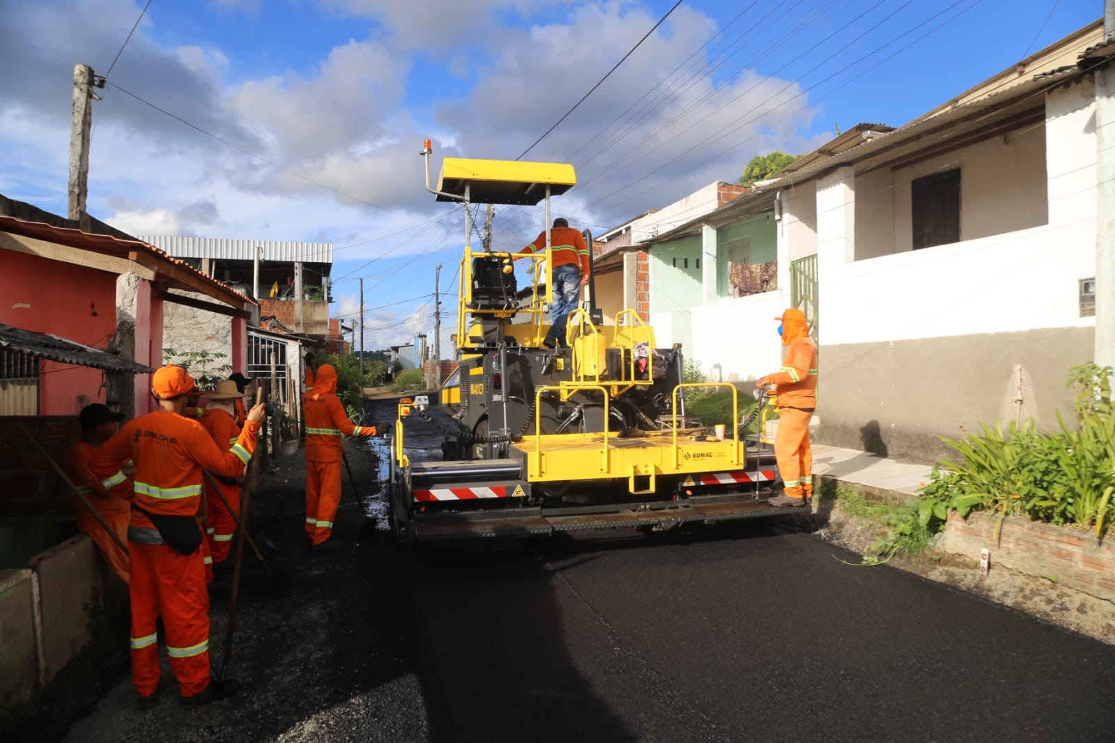 Durante grande parte do sábado, operários e máquinas da Buloke Construtora e Serviço prepararam para a pavimentação a Rua Principal, onde está a Escola João Alves Araújo da Rede Municipal de Ensino. “Não vejo a hora de ver meus filhos, sobrinhos e netos chegarem à sala de aula como saíram de casa. Você não sabe como é bom para as crianças, pais e professores poderem transitar sem lama nas ruas”, comentou uma servidora da USF Raimundo Freire, que atende aos moradores do bairro.