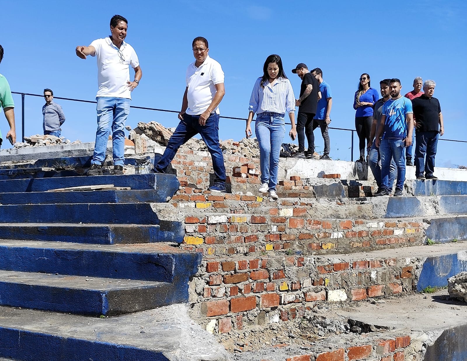 Acompanhado dos secretários municipais José Alcântara Pellegrini (Esportes), Sônia Fontes (Infraestrutura e Urbanismo), Rosivaldo Pinheiro (Governo), além de engenheiros e arquitetos o prefeito conversou com os responsáveis pela construtora, analisou cada estágio das obras e serviços e avaliou cada detalhe dos projetos em execução.