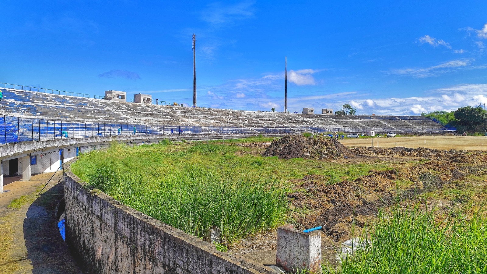 De acordo com o engenheiro civil Felipe Domingos, da ORDF Construções e Edificações, diversas frentes de obra estão atuando no Itabunão. O campo, por exemplo, está com a drenagem e irrigação prontos e o colchão de areia também apto a receber o plantio da grama. “Temos também lanchonetes, posto da PM e de Enfermagem em conclusão”, informou.